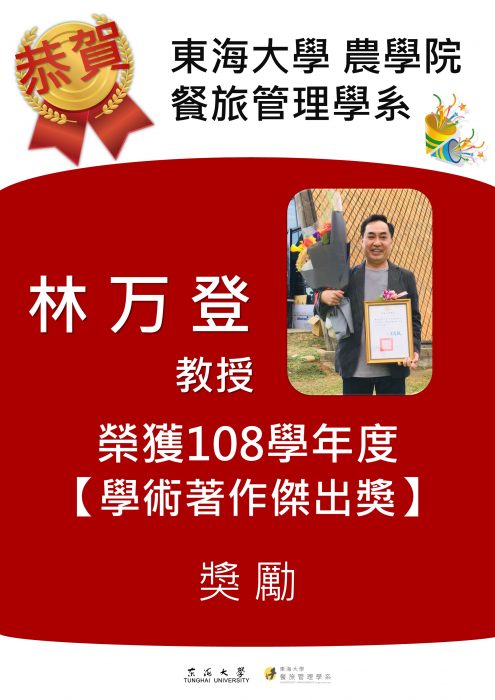 恭賀!本系林万登教授榮獲108學術著作傑出獎