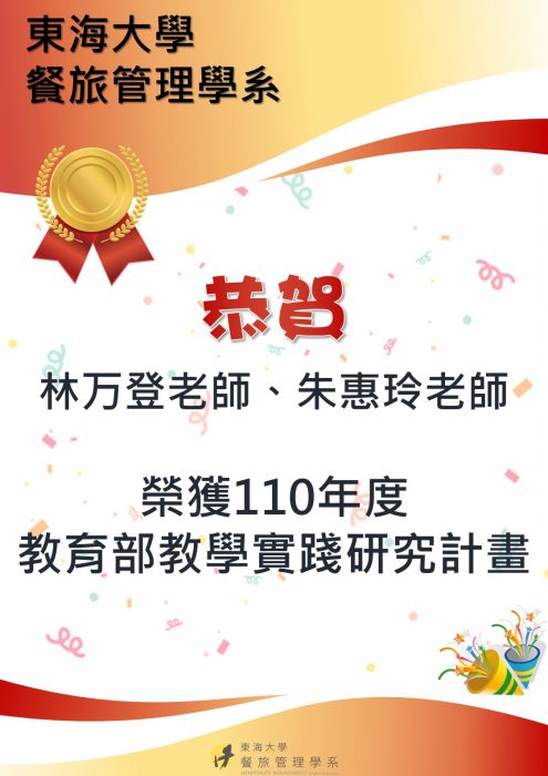 恭賀 本系林万登老師、朱惠玲老師,榮獲110 年度教育部教學實踐研究計畫補助