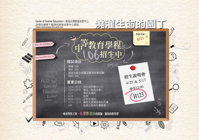 本校師資培育中心106學年度中等教育學程招生甄選報名開始囉!